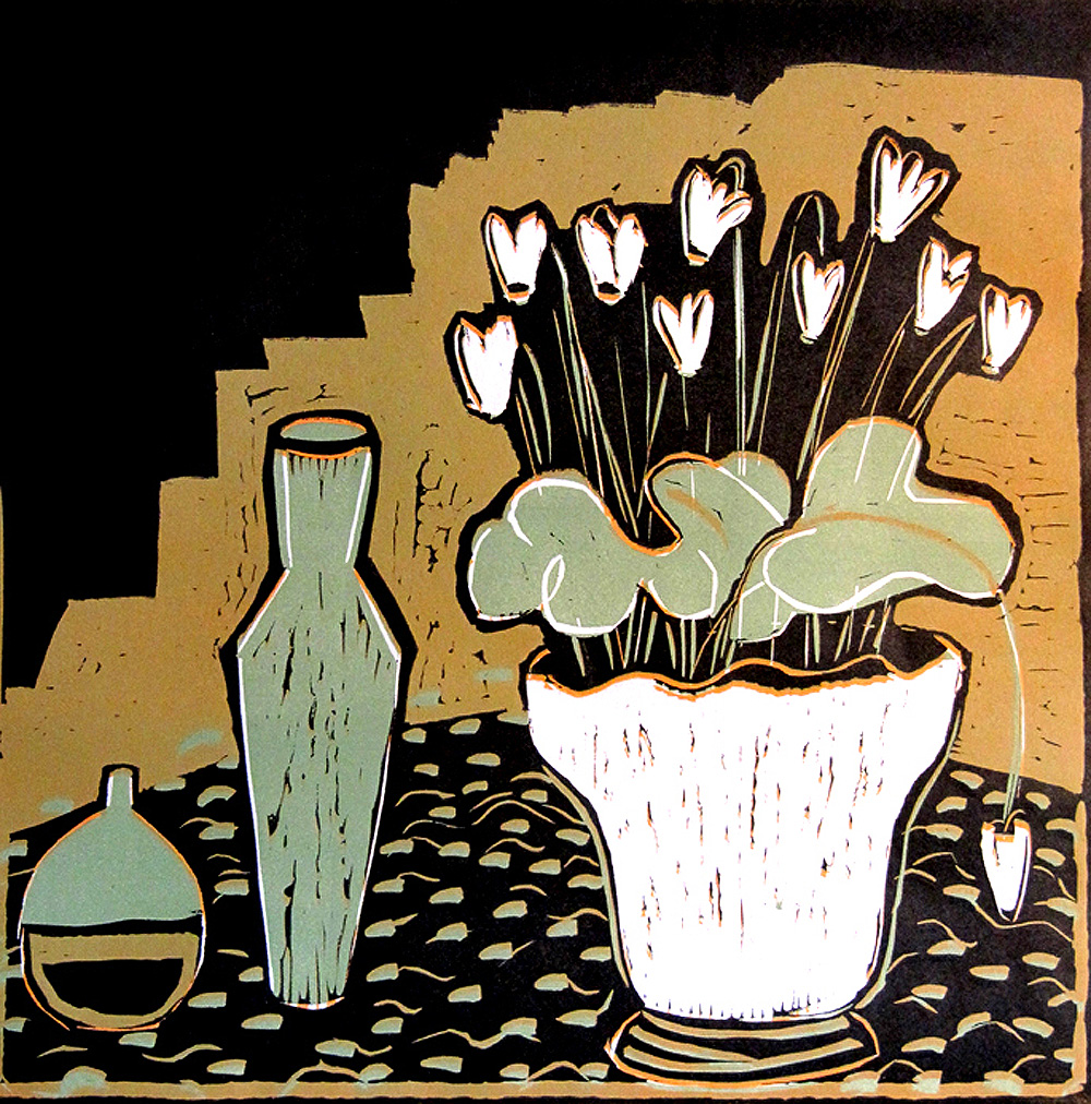 Cyclamen – reduction linocut