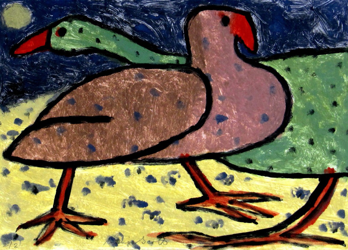 Two Coots – monoprint