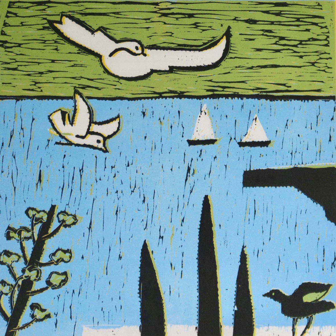 Seagulls – reduction linocut – 30x30cm