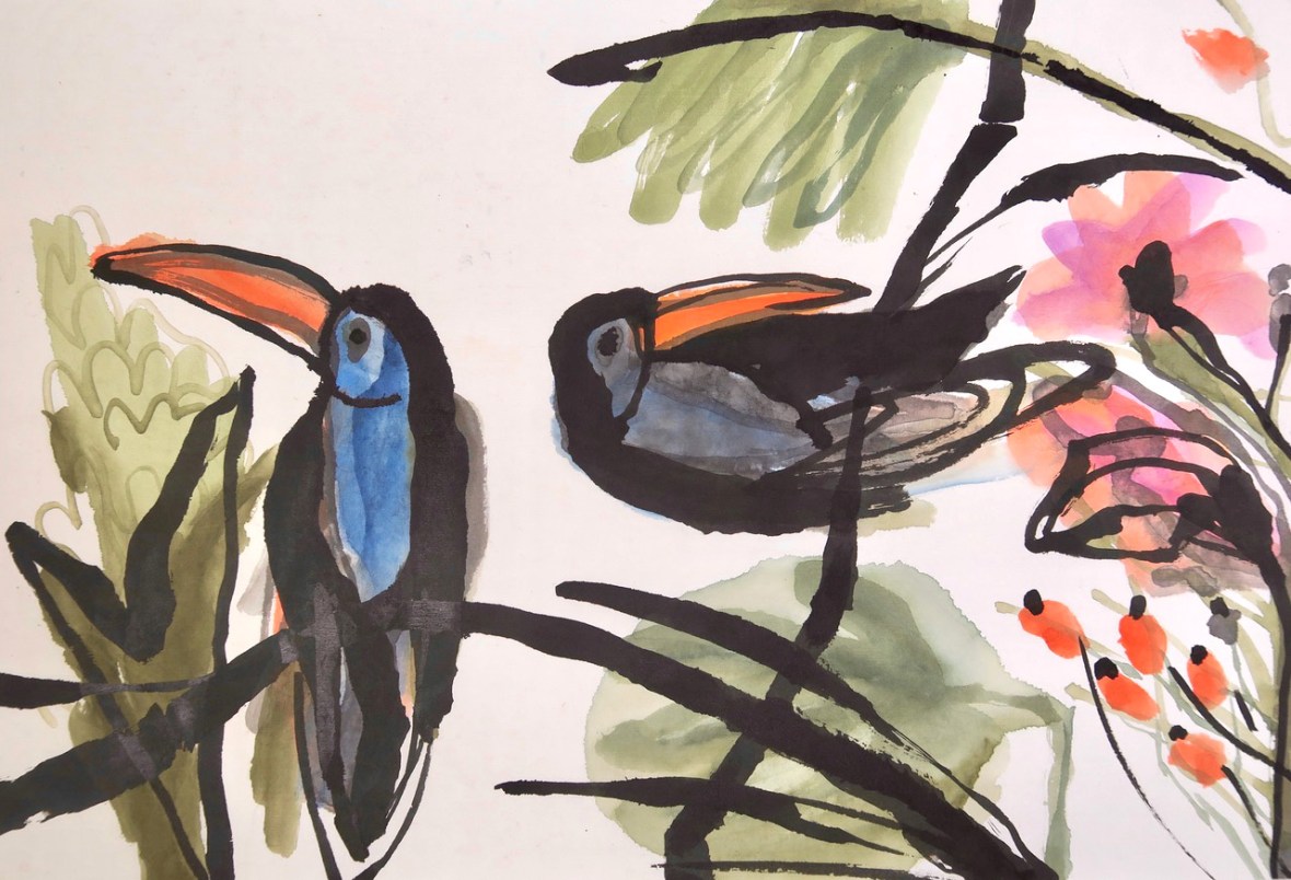 two-toucans March 1, 2017 • 1280 × 873 • Figurative drawings and paintings Two Toucans – ink and watercolour on paper – 31x46cm