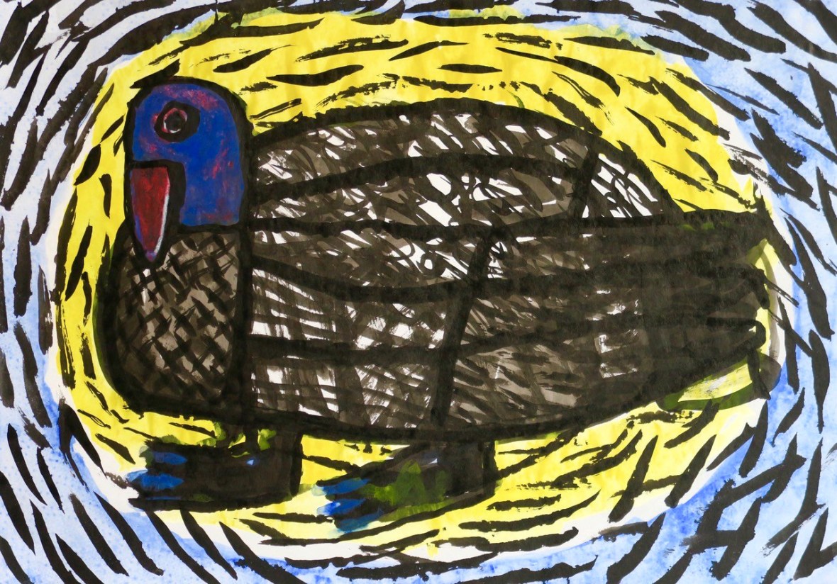 Blue Duck_ink_gouache_crayon_30x42cm March 22, 2019 • 1280 × 894 • A selection of current work Blue Duck – gouache, crayon – 30 x 42 cm